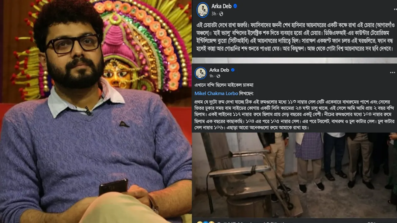 আয়নাঘর পরিদর্শন শেষে অর্ক দেব সেখানকার একটি ইলেকট্রিক চেয়ারের ছবি নিজের ফেসবুকে পোস্ট করে লিখেছেন, ‘এই চেয়ারটা দেখে রাখা জরুরি। ফ্যাসিবাদের জননী শেখ হাসিনার আয়নাঘরের একটি কক্ষে রাখা এই চেয়ার (আগারগাঁও অঞ্চলে)। ‘হাই ভ্যালু’ বন্দিদের ইলেকট্রিক শক দিতে ব্যবহার হতো এই চেয়ার। ডিজিএফআইয়ের কাউন্টার টেরোরিজম ইন্টেলিজেন্স ব্যুরো (সিটিআইবি) এই আয়নাঘরের দায়িত্বে ছিল। সারাক্ষণ একজস্ট ফ্যান চলত এই ঘরগুলোতে, ফ্যান বন্ধ হলেই কান্না আর গোঙানির শব্দ শুনতে পাওয়া যেত। আর কিছুক্ষণ। আজ থেকে গোটা বিশ্ব আয়নাঘরের সব ছবি দেখবে।