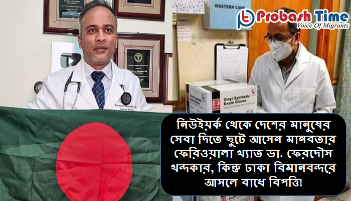 মহামারী করোনাভাইরাসের চিকিৎসা দিতে যুক্তরাষ্ট্র থেকে দেশে আসেন ডা. ফেরদৌস খন্দকার। নিউইয়র্ক থেকে ঢাকার হযরত শাহজালাল আন্তর্জাতিক বিমানবন্দরে আসলে বাধে বিপত্তি, ১৪ দিন কোয়ারেন্টিন রাখতে তাকে নিয়ে যাওয়া হয়। আর তার সঙ্গে আনা চিকিৎসা ও সুরক্ষা সামগ্রী কর দিতে হবে বলে আটকে দেওয়া হয়। আজ সোমবার ফেসবুক লাইভে এসে এসব কথা জানান ডা. ফেরদৌস খন্দকার।