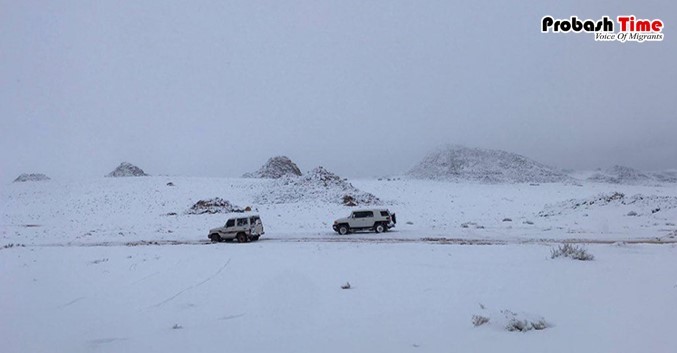 মরু এলাকায় তুষারপাত হচ্ছে- শুনলে প্রথমে কেউই বিশ্বাস করতে চাইবে না। জলবায়ু পরিবর্তনের কারণেও এমনটা হওয়ার কথা না। আবার ভৌগলিক কারণেও তা সম্ভব নয়। তাহলে কিভাবে হচ্ছে তুষারপাত! আবার সেখানে রীতিমতো বরফের মধ্যে চলছে স্কেটিং। এসব কিছু মরু অঞ্চলে কল্পনার বাইরে। তবে ঘটনা হচ্ছে প্রযুক্তির উৎকর্ষের কারণে। সৌদিআরবের ট্রোজেনার স্কাই ভিলেজ স্নো মেকিং টেকনিশিয়ানরা সফলভাবে সারাওয়াত পর্বতমালায় কৃত্রিম তুষার উৎপাদন করতে সক্ষম হয়েছে। আর সেখানেই চলবে এই স্কেটিং।
