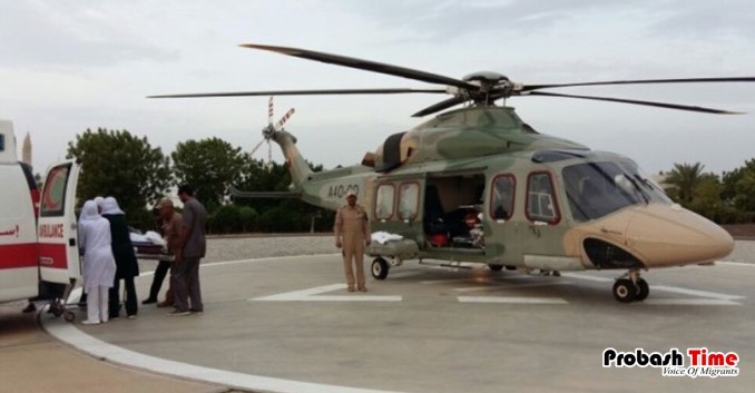 সম্প্রতি ওমানে গুরুতর অসুস্থ এক প্রবাসীকে হাসপাতালে নিয়ে গেছে ওমানের বিমান বাহিনী। জরুরি স্বাস্থ্য সেবার প্রয়োজনে তাকে হেলিকপ্টারে করে হাসপাতালে স্থানান্তর করা হয়। তবে ওই প্রবাসীর নাম পরিচয় কিছু জানা যায় নি। ওমানের প্রতিরক্ষা মন্ত্রণালয়ের বরাত দিয়ে এই তথ্য জানায় টাইমস অব ওমান।