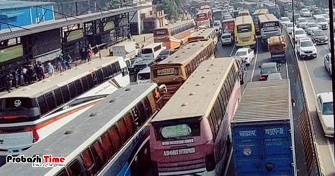 সরেজমিন দেখা গেছে, সকাল থেকে কার্যত এয়ারপোর্টমুখী সড়কে যানচলাচল স্থবির হয়ে রয়েছে। বিশেষ করে মহাখালী বা প্রগতি সরণি থেকে বিমানবন্দর হয়ে উত্তরাগামী রাস্তায় যানচলাচল একদম বন্ধ রয়েছে। ফলে বিমানবন্দর হয়ে এই যানজটে একদিকে পৌঁছেছে মহাখালী ফ্লাইওভার পর্যন্ত, অন্যদিকে পৌঁছেছে রামপুরা পর্যন্ত। ঘণ্টা পর ঘণ্টা গাড়িতে বসে থেকে অতিষ্ঠ হয়ে অনেক যাত্রী হেঁটে গন্তব্যের দিকে রওনা হয়েছেন।