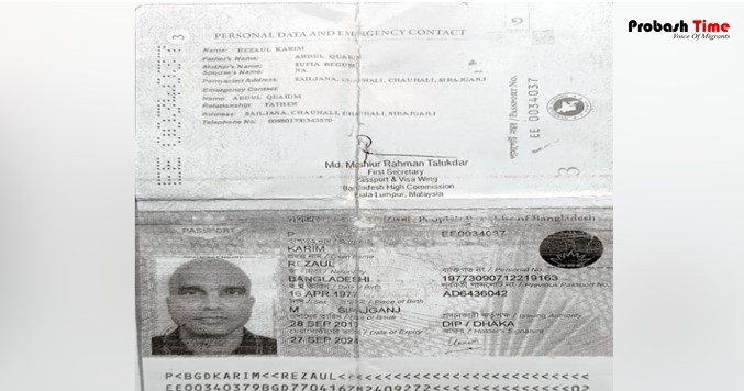 মালয়েশিয়ার কুয়ালালামপুর হাসপাতাল মর্গে এক মাস ধরে পড়ে আছে রেজাউল করিম নামের এক বাংলাদেশির মরদেহ। গত ১২ ডিসেম্বর তিনি মারা যান। পাসপোর্ট অনুযায়ী ওই বাংলাদেশির নাম রেজাউল করিম (৪৫)। গত ১২ ডিসেম্বর মারা যান রেজাউল। নাম জানা গেলেও এখন পর্যন্ত তার পরিবারের সন্ধান মেলেনি। মৃত রেজাউল করিমের পাসপোর্টের তথ্য অনুযায়ী, তিনি সিরাজগঞ্জের চৌহালী থানার সাইলজানা গ্রামের আব্দুল কাইয়ূম ও সুফিয়া বেগমের ছেলে। পরিবারের কোনো সন্ধান না পাওয়ায় তাকে দেশে পাঠানো বা মালয়েশিয়ায় দাফন করা সম্ভব হচ্ছে না।