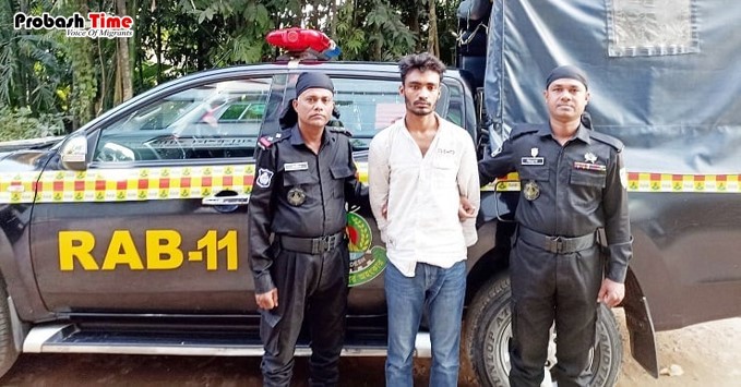 র্যাব-১১ এর সিপিসি-৩ নোয়াখালী ক্যাম্পের কোম্পানি কমান্ডার লেফটেন্যান্ট মাহমুদুল হাসান জানান, গত ৫ জানুয়ারি ওমান প্রবাসীর স্ত্রী প্রকৃতির ডাকে ঘর থেকে বের হলে তাকে তুলে নিয়ে পুকুরপাড়ে চারজন মিলে ধর্ষণ করে।