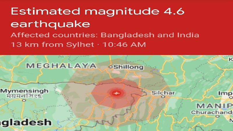 ভূমিকম্পের উৎপত্তিস্থল সিলেট থেকে ১৩ কিলোমিটার দূরে শিলচরে। প্রাথমিকভাবে ভূমিকম্পে ক্ষয়ক্ষতির কোনো খবর পাওয়া যায়নি।