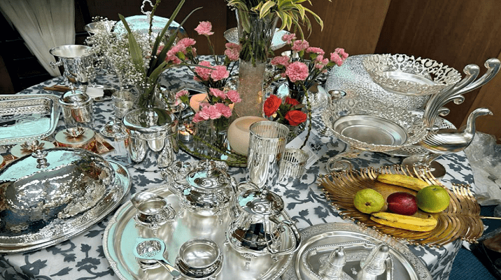 এতে জয়পুর, পশ্চিমবঙ্গ, উত্তরপ্রদেশ, কর্ণাটক এবং দেশের অন্যান্য অংশের কারিগররাও কাজ করেছেন। ডিজাইনগুলোকে সূক্ষ্ম বিবরণ, পুঁতি এবং হস্তশিল্পের নিখুঁত দক্ষতায় ফুটিয়ে তোলা হয়েছে। ইলেকট্রোলেটেড সিলভার প্রলেপটি আরও পরিশীলতার ছোঁয়া যোগ করেছে। এগুলো অনুষ্ঠানের জাকঁজমকতাতে আরও কয়েকগুন বাড়িয়ে দেয়।’ কারুকাজ করার পরে, প্রতিটি পাত্র আর অ্যান্ড ডি ল্যাবে পুঙ্খানুপুঙ্খ পরীক্ষার মধ্য দিয়ে যায়। বাসনগুলির নকশা প্রতিটি হোটেলের নির্দিষ্ট মেন্যুর সঙ্গে মিল রেখে তৈরী করা হয়েছে। এরমধ্যে অন্যতম হলো ‘মহারাজা থালি’। এর মধ্যে লবন ও গোলমরিচ রাখার জন্য আলাদা রুপার পাত্র এবং ৫-৬ বাটির রাখা হয়েছে।