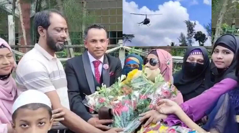 মা ও ছেলেকে সঙ্গে নিয়ে হেলিকপ্টারে বাড়ি ফিরেছেন দক্ষিণ আফ্রিকা প্রবাসী আবদুল করিম মামুন। মঙ্গলবার (১২ সেপ্টেম্বর) দুপুরে নোয়াখালীর সোনাইমুড়ী উপজেলার আবিরপাড়া মাধ্যমিক বিদ্যানিকেতন স্কুলমাঠে হেলিকপ্টারটি অবতরণ করে। তাদের এমন অবতরণ দেখতে সেখানে ভিড় জমান হাজার উৎসুক জনতা। এ সময় এলাকাবাসী মামুনকে ফুল দিয়ে শুভেচ্ছা জানান।