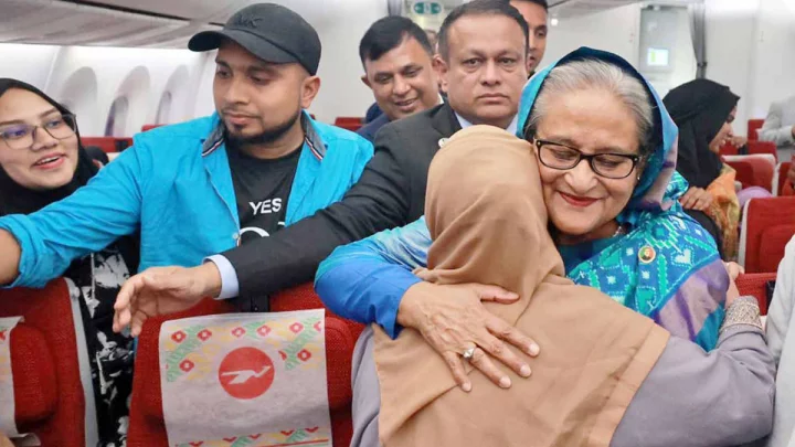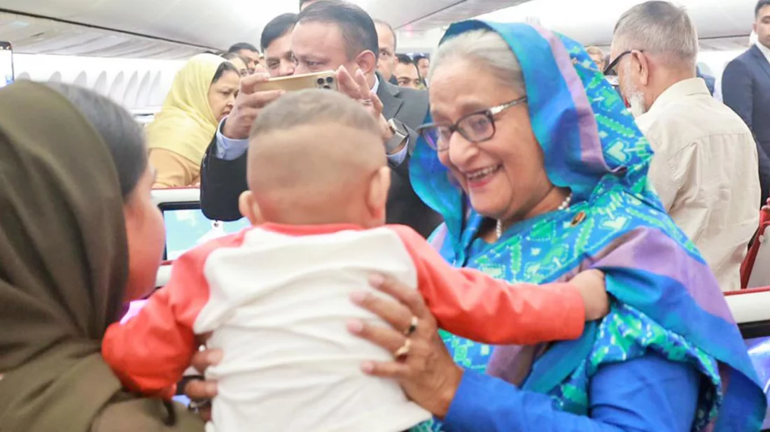 মঙ্গলবার মধ্যরাতে সাংবাদিক ইয়াসিন কবির জয় তার ফেসবুকে কয়েকটি ছবি পোস্ট করেছেন। সেখানে দেখা যায়, প্রধানমন্ত্রী বিমানের প্রতিটি যাত্রীর সঙ্গে হেঁটে হেঁটে কথা বলেন।