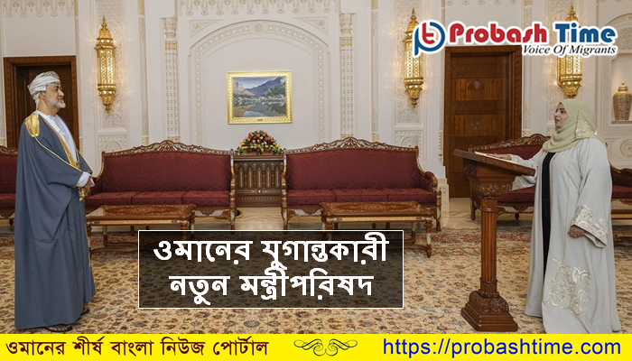 ওমানের সুলতান হাইথাম বিন তারেকের নতুন মন্ত্রীপরিষদে স্থান পেয়েছেন দুইজন নারী। সুলতানের যুগান্তকারী নতুন এই মন্ত্রীপরিষদ নিয়ে ইতিমধ্যেই বিশ্বের বিভিন্ন দেশ থেকে ভুয়ুসি প্রশংসা করা হচ্ছে। গতকাল (২৬-আগস্ট) ওমানের আল বারকা রাজ প্রাসাদে নতুন মন্ত্রীদের শপথ পাঠ করান সুলতান হাইতাম বিন তারিখ।