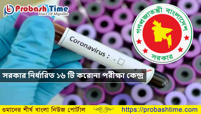 প্রবাসীদের জন্য কোভিড পরীক্ষার সরকার নির্ধারিত ১৬ টি প্রতিষ্ঠান