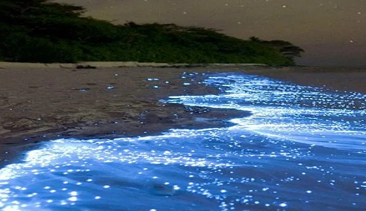 সমুদ্রের ঢেউ যখন বালুবেলায় আছড়ে পড়ে, তখন এক অদ্ভুত দৃশ্য দেখা যায়। নীল নিয়নবাতির মতো ঝলমল করে জ্বলে ওঠে ঢেউগুলো। পৃথিবীর বিভিন্ন সমুদ্রতটে এই বিরল দৃশ্য কখনো কখনো দেখা যায়। আর এখন এই অপূর্ব প্রাকৃতিক ঘটনাটি ঘটছে সেন্ট মার্টিন দ্বীপে। বিশেষত যে সময় পূর্ণিমা থাকে আর দ্বীপের দক্ষিণাংশে আলোকদূষণ কম থাকে, তখন অপূর্ব দৃশ্যটি দেখা যায় বেশি। দিনের আলো ফুরানোর পরপরই দৃশ্যটি ফুটে ওঠে, যা বহু পর্যটককে আকৃষ্ট করে।