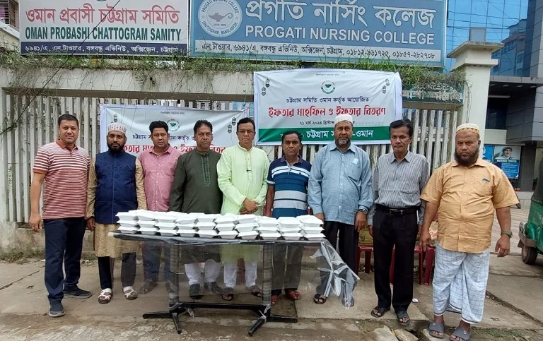 শিক্ষার্থী, রিকশাওয়ালা, দুস্থ ও পথচারীদের মধ্যে ইফতার সামগ্রী বিতরণ করেছে প্রবাসের বুকে দুস্থ মানবতার সেবায় গড়ে ওঠা সংগঠন চট্টগ্রাম সমিতি ওমান। পরবর্তীতে জি, ই, সি মোড়ে সানমার টাওয়ার-১ এর নবম তলায় কপারচিম্নি হোটেলের কনফারেন্স রূমে ইফতার ও দোয়া মাহফিলের আয়োজন করা হয়।