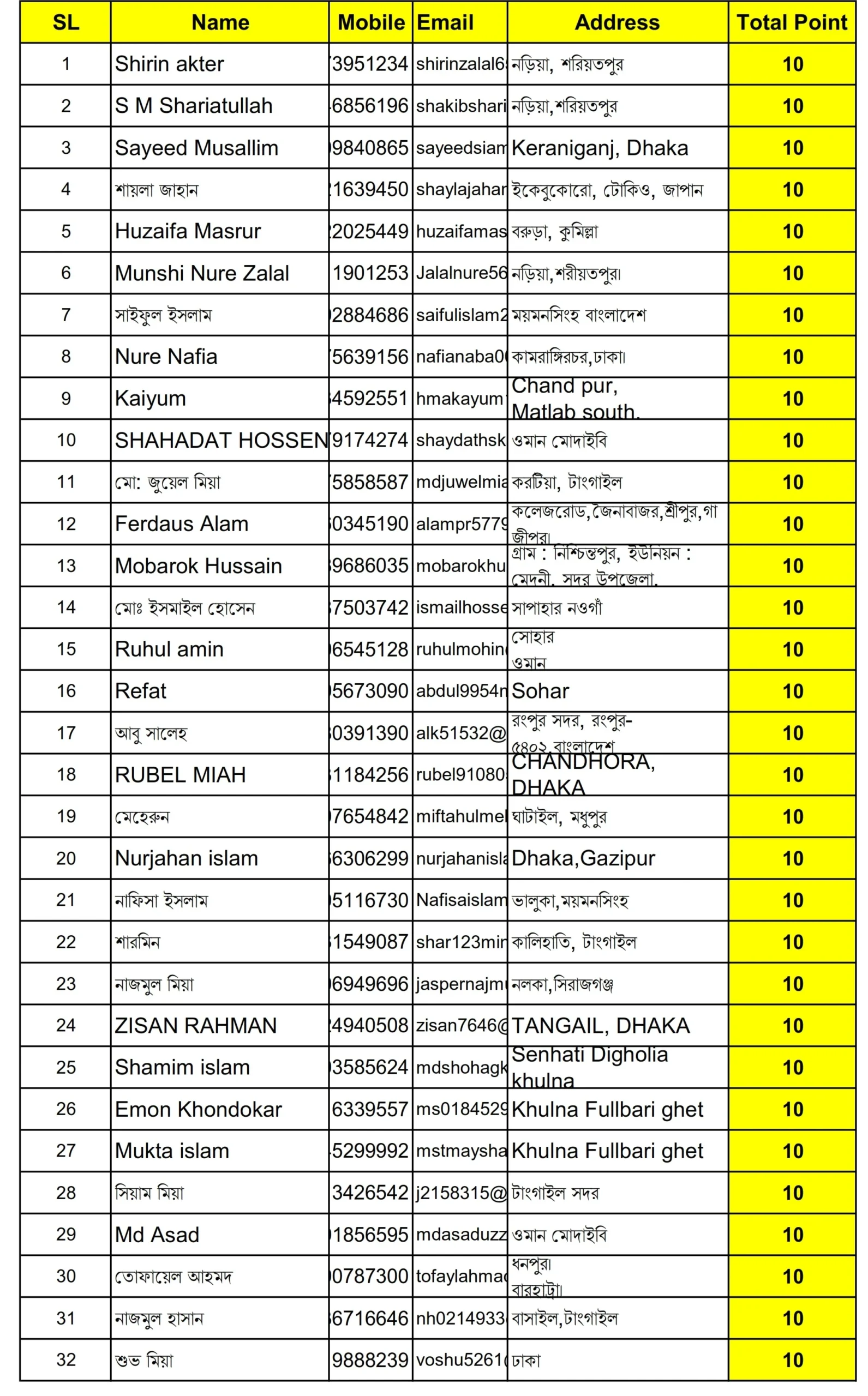 আজকের সম্ভাব্য বিজয়ীদের তালিকা