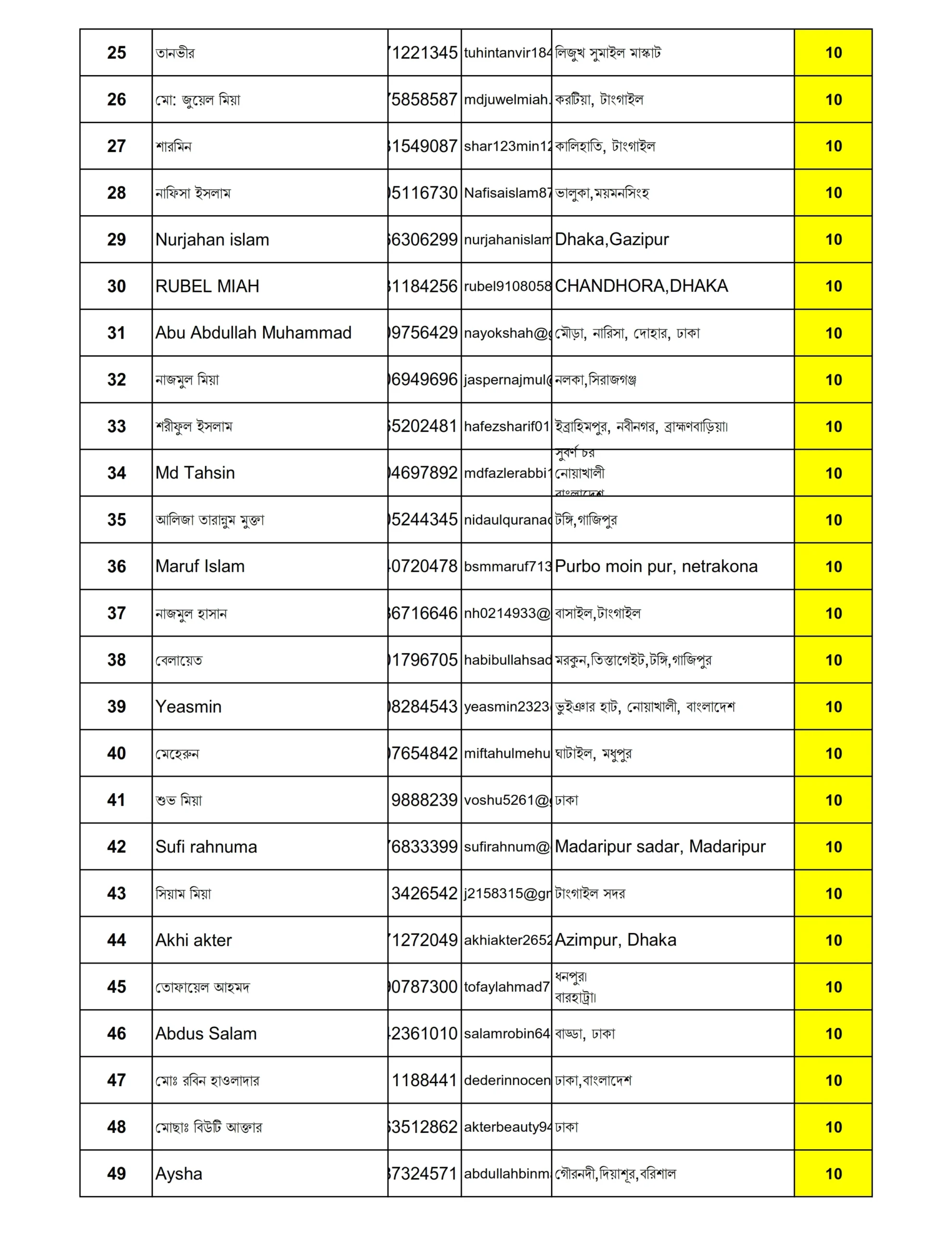 আজকের সম্ভাব্য বিজয়ীদের তালিকা