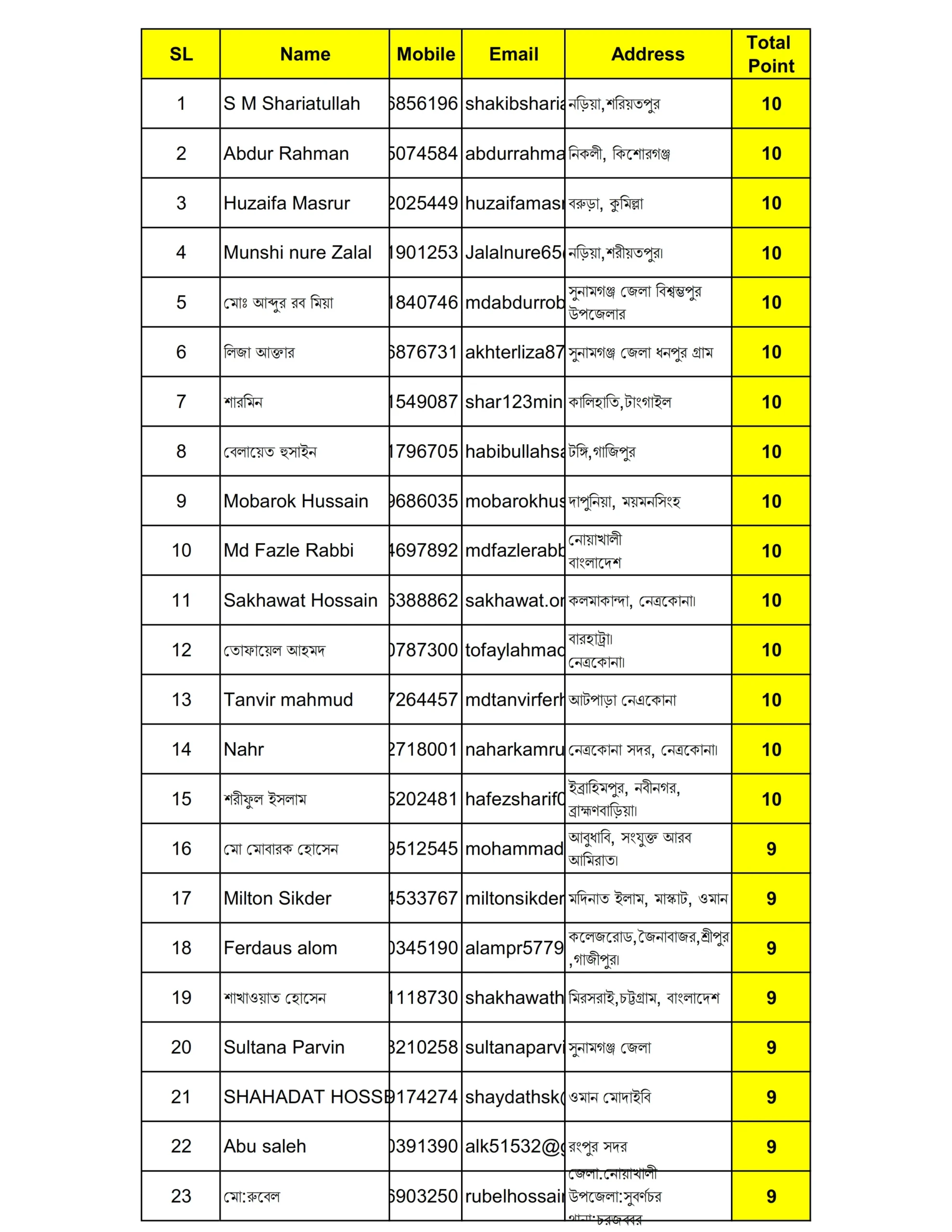 ৩০তম দিনের কুইজে সম্ভাব্য বিজয়ীদের তালিকা