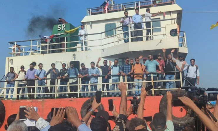 এতে শেষ হলো ২৩ পরিবারের দীর্ঘ অপেক্ষার পালা। দীর্ঘদিন পর কাছে পেয়ে এই নাবিকদের অনেক স্বজন কেঁদে ফেলেন। নাবিকদের বরণ করতে ফুল হাতে জেটিতে আসেন স্বজনরা।