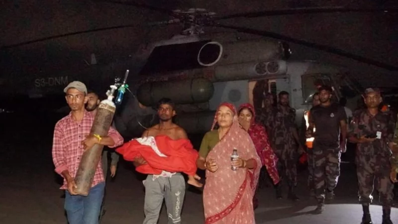 ফেনী জেলার পরশুরামে ভয়াবহ বন্যার কবলে পড়েছে হাজার হাজার মানুষ। এই দুর্যোগে নিরীহ শিশুরা সবচেয়ে বেশি ক্ষতিগ্রস্ত। এমনই এক মুমূর্ষু শিশুকে হেলিকপ্টারে উদ্ধার করে ঢাকায় নিয়ে আসার মাধ্যমে বিজিবি তাদের মানবিকতার জ্বলন্ত প্রমাণ রেখেছে।