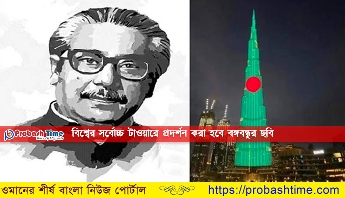 এবার বিশ্বের সর্বোচ্চ উচ্চতার টাওয়ার বুর্জ খলিফায় প্রদর্শন করা হবে বঙ্গবন্ধু শেখ মুজিবুর রহমানের ছবি। আগামী ১৭ মার্চ আরব আমিরাতের বাণিজ্যিক শহর দুবাইয়ে অবস্থিত ২ হাজার ৭১৬ ফুট উচ্চতার এ ভবনটিতে দেখা মিলবে বঙ্গবন্ধুর ছবির।