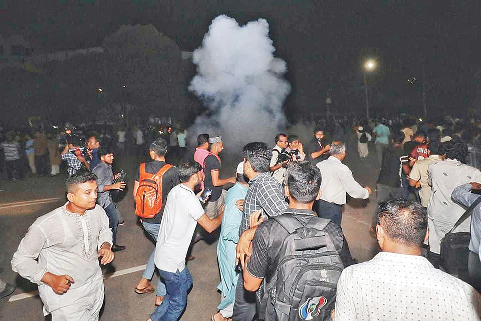 রাষ্ট্রপতির পদত্যাগের দাবিতে গতকাল দুপুর থেকে ভিন্ন ভিন্ন ব্যানারে বঙ্গভবনের সামনের সড়কে অবস্থান নেন কয়েক শ বিক্ষোভকারী। রাত সাড়ে আটটার দিকে তাঁদের একটি অংশ বঙ্গভবনের সামনের ব্যারিকেড (প্রতিবন্ধক) ভেঙে এগোনোর চেষ্টা করলে পুলিশ লাঠিপেটা করে ও সাউন্ড গ্রেনেড ছোড়ে। পরে সেনাবাহিনীর সদস্যরা পরিস্থিতি নিয়ন্ত্রণে আনেন। রাত পৌনে ২টার দিকে বিক্ষোভকারীরা বঙ্গভবন এলাকা ছেড়ে যান।