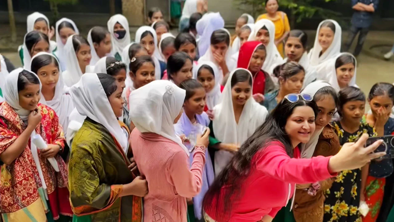 এরপরই তাদেরকে বিকেলে আসার কথা বলেন নায়িকা। তার কথায় বিকেলে আবারও চলে আসে তারা। তবে এবার শুধু শিক্ষার্থীরাই ছিলেন না, সঙ্গে ছিলেন এলাকার আরও কিছু সাধারণ উৎসুক মানুষেরাও।